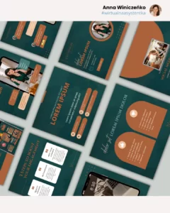 Razem z szablonami otrzymujesz moodboard z wykorzystanymi w szablonach kolorami, fontami oraz elementami. Z łatwością stworzysz kolejne grafiki oraz przeniesiesz zaprojektowaną identyfikację graficzną również na inne kanały, przez które komunikuje się Twoja marka np. stronę www lub newsletter.